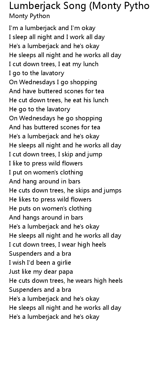 I'm a lumberjack and I'm okay |
