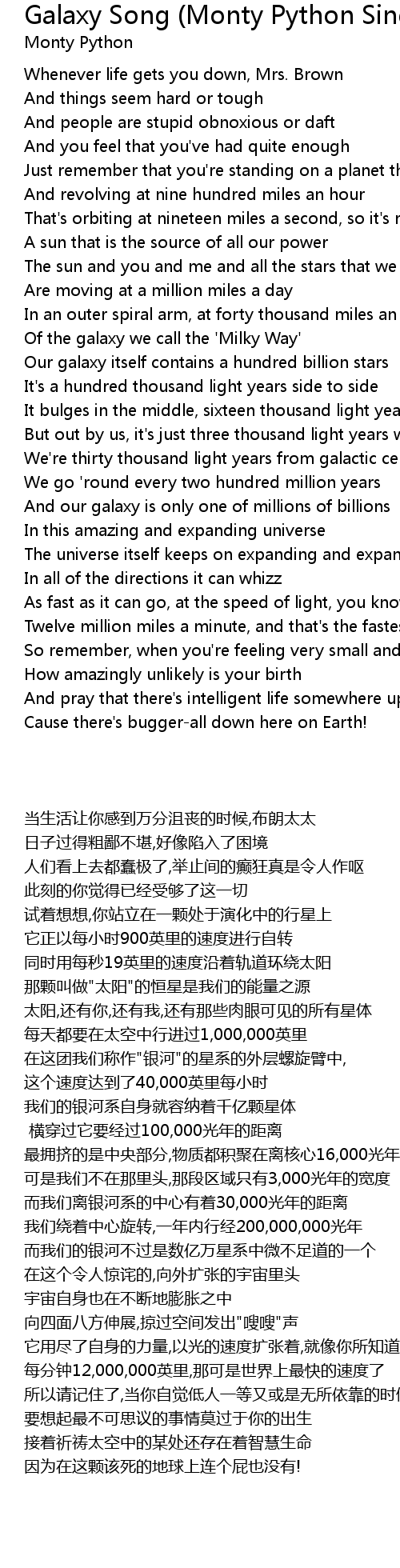And pray that there's intelligent life somewhere up in space |