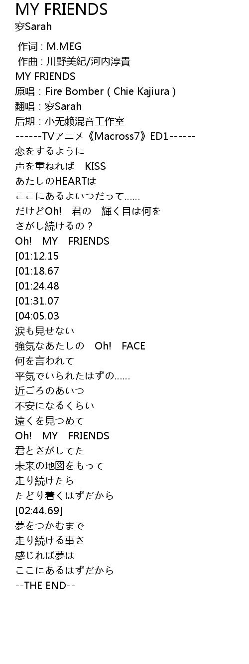 | [00:01.00] | MY FRIENDS |