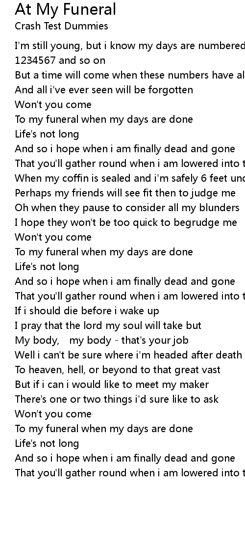 | Song | At My Funeral |
