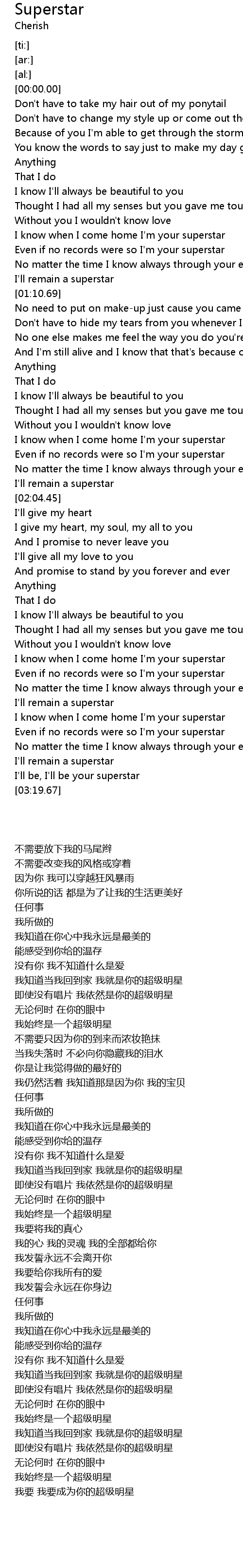 | [00:57.38] | Even if no records were so I'm your superstar |