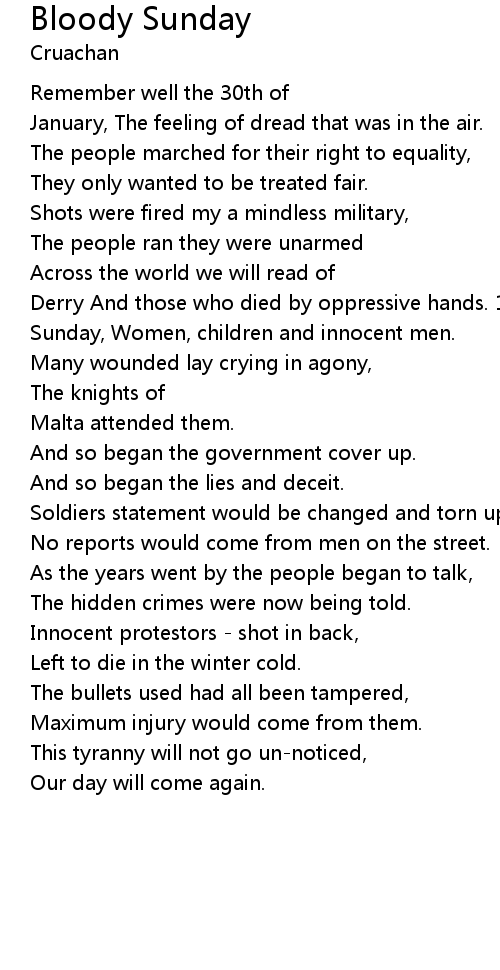 | Derry And those who died by oppressive hands. 13 people lost their lives that | |