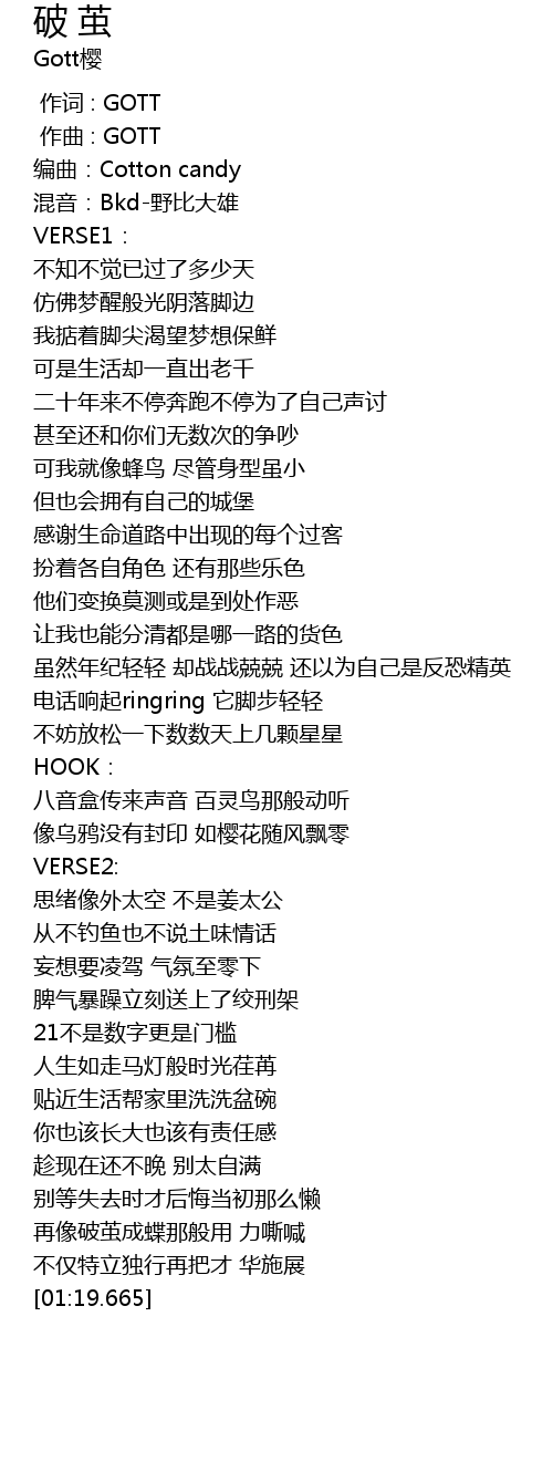 | [00:00.000] | 作词 : GOTT |