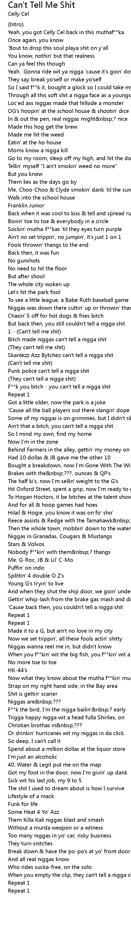 F**k you bitch - you can't tell a nigga shit |