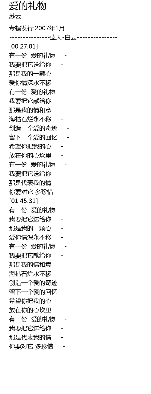 | [03:01.51] | 有一份 爱的礼物 - |