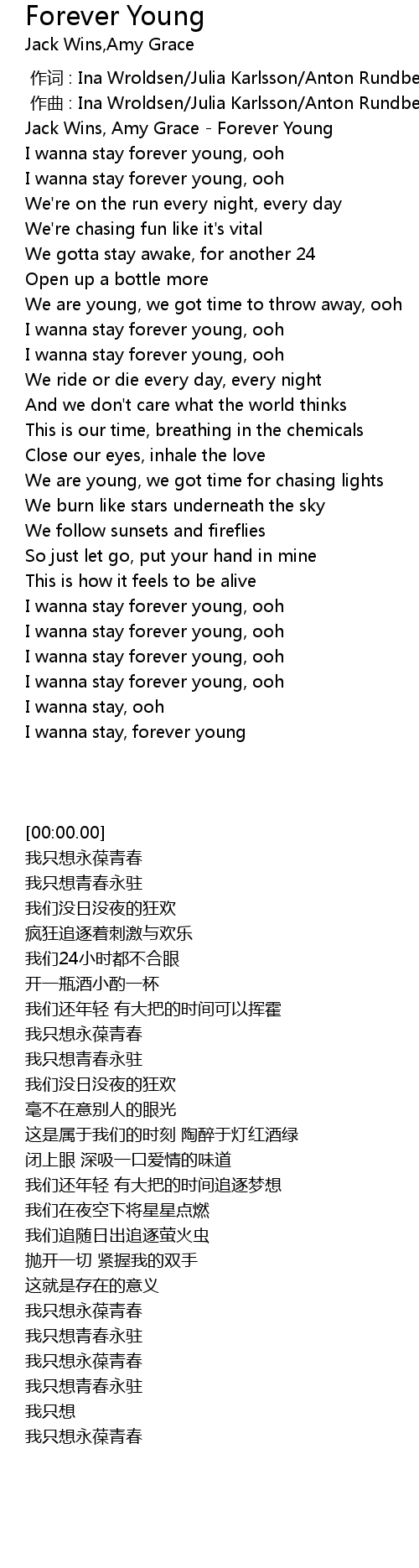 | [00:00.00] | Jack Wins, Amy Grace - Forever Young |