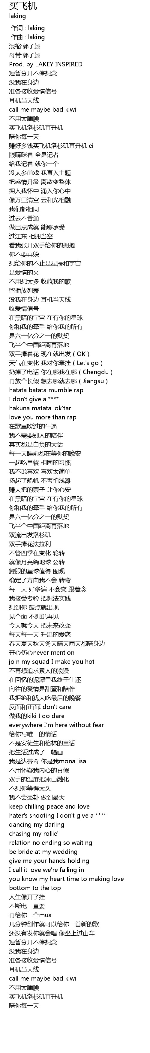 | [00:00.000] | 作词 : laking |