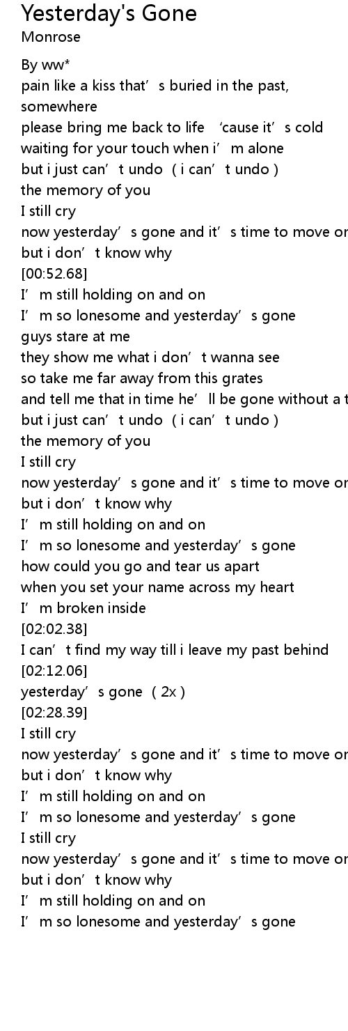| [00:43.72] | now yesterday' s gone and it' s time to move on |