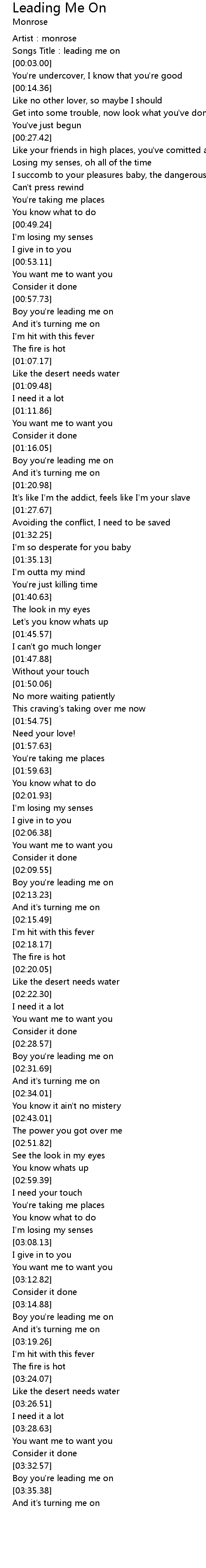 | [00:38.05] | I succomb to your pleasures baby, the dangerous kind |