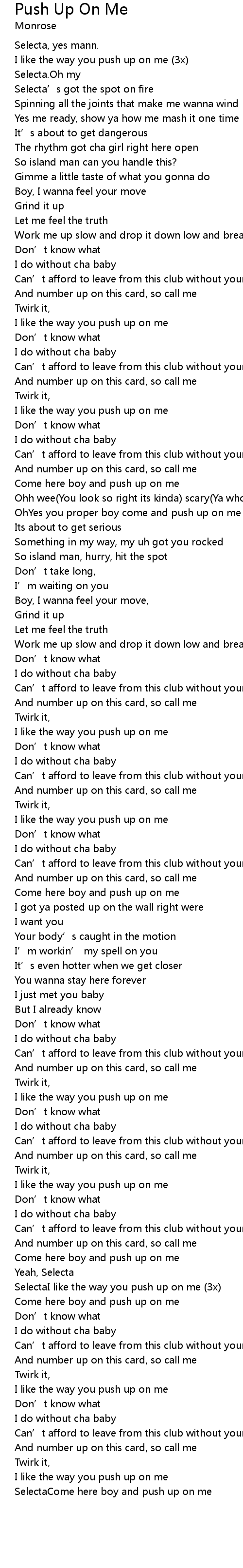| SelectaI like the way you push up on me (3x) | |