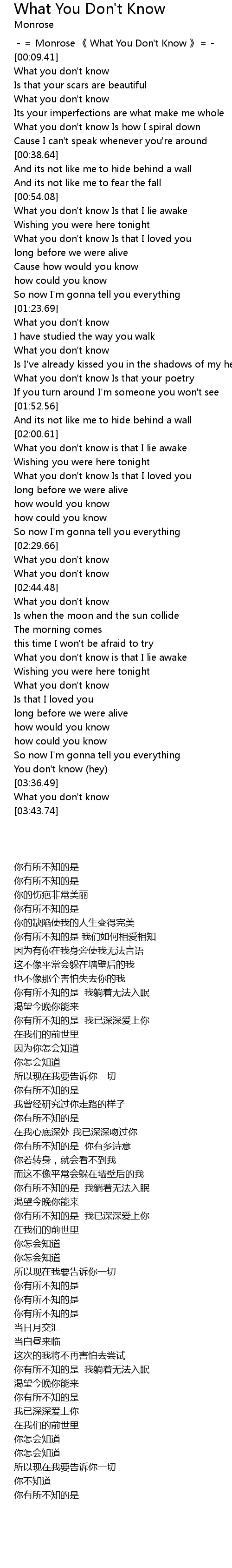 | [00:03.83] | -= Monrose 《 What You Don't Know 》=- |