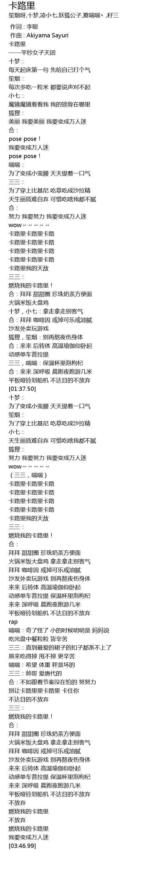| [02:06.03] | kǎ lù lǐ kǎ lù lǐ kǎ lù |