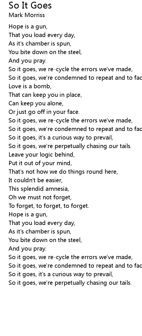 So it goes, we're condemned to repeat and to fade, |