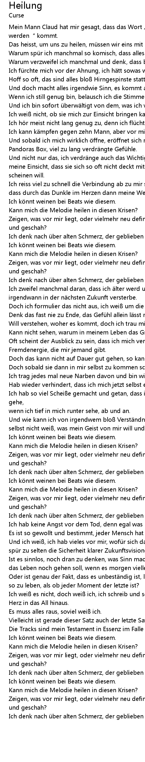 | Die Tracks sind mein Testament in Essenz im Falle des Falles. | |