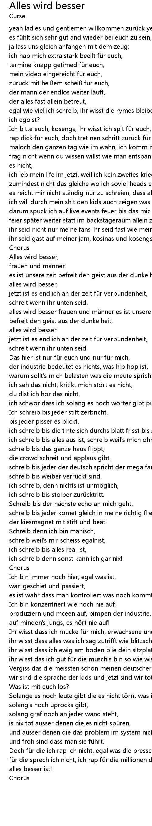| ich schw r dass ich solang es noch w rter gibt punchlines und verses kick. | |