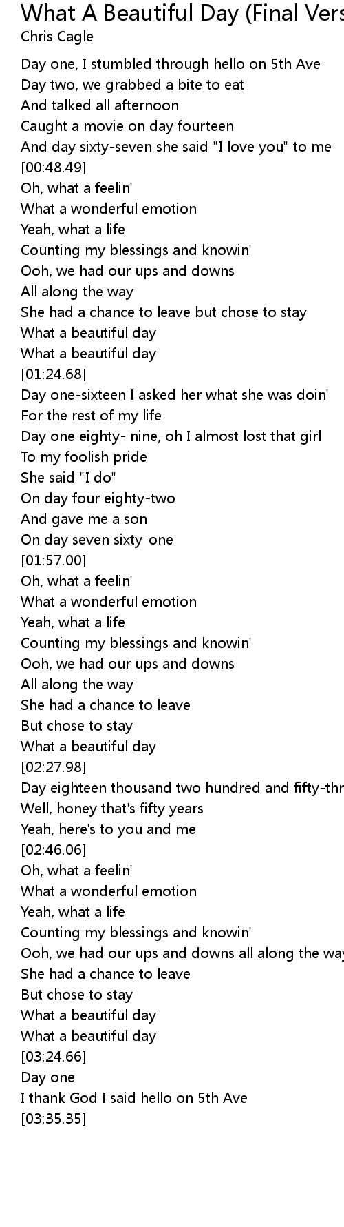 What a beautiful day |