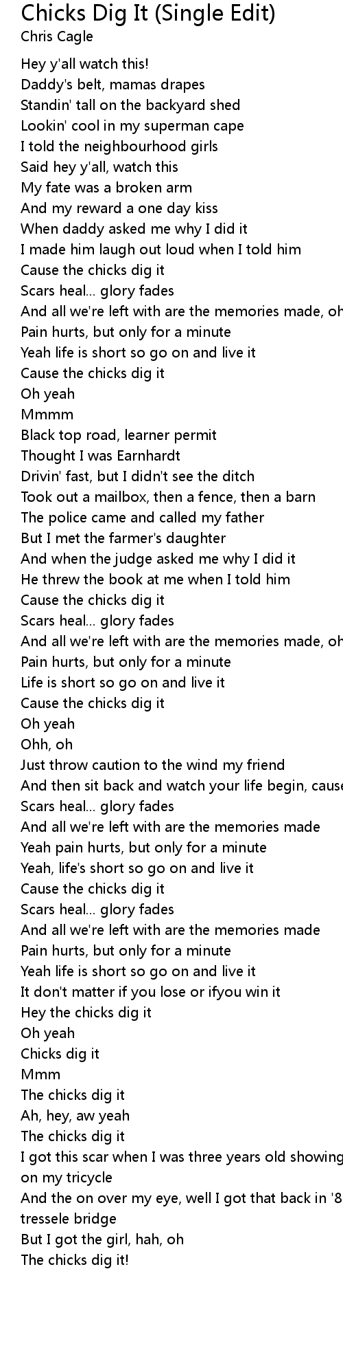 Hey the chicks dig it |