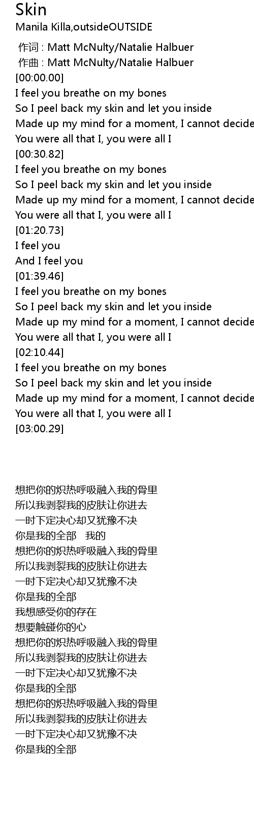 | [01:47.53] | So I peel back my skin and let you inside |