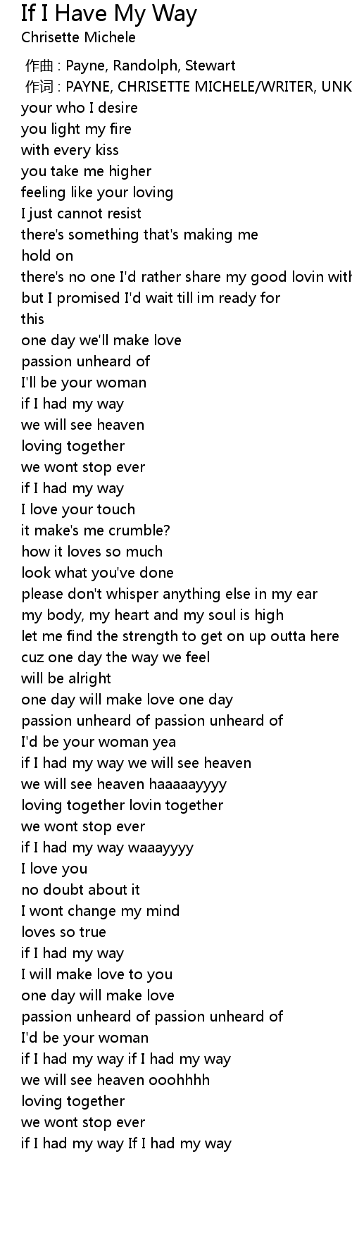 | Song | If I Have My Way |