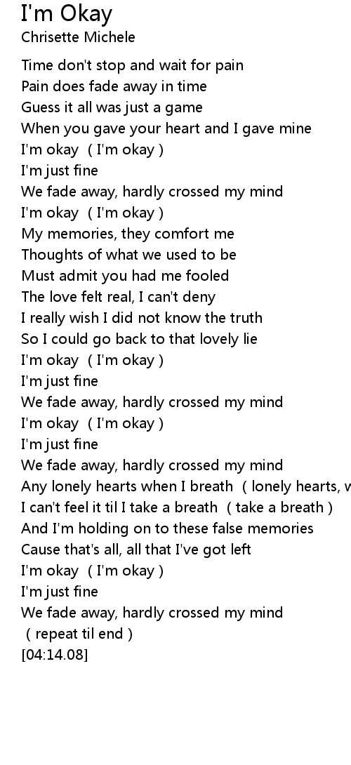 | [02:19.75] | I'm okay (I'm okay) |