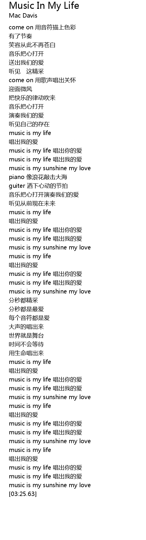 | [02:25.42] | music is my life |