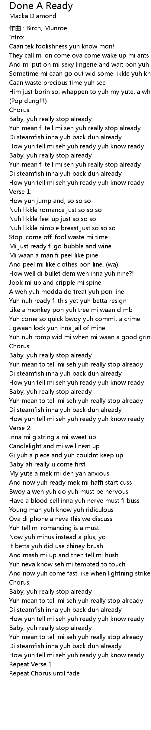 | How yuh tell mi seh yuh ready yuh know ready | |