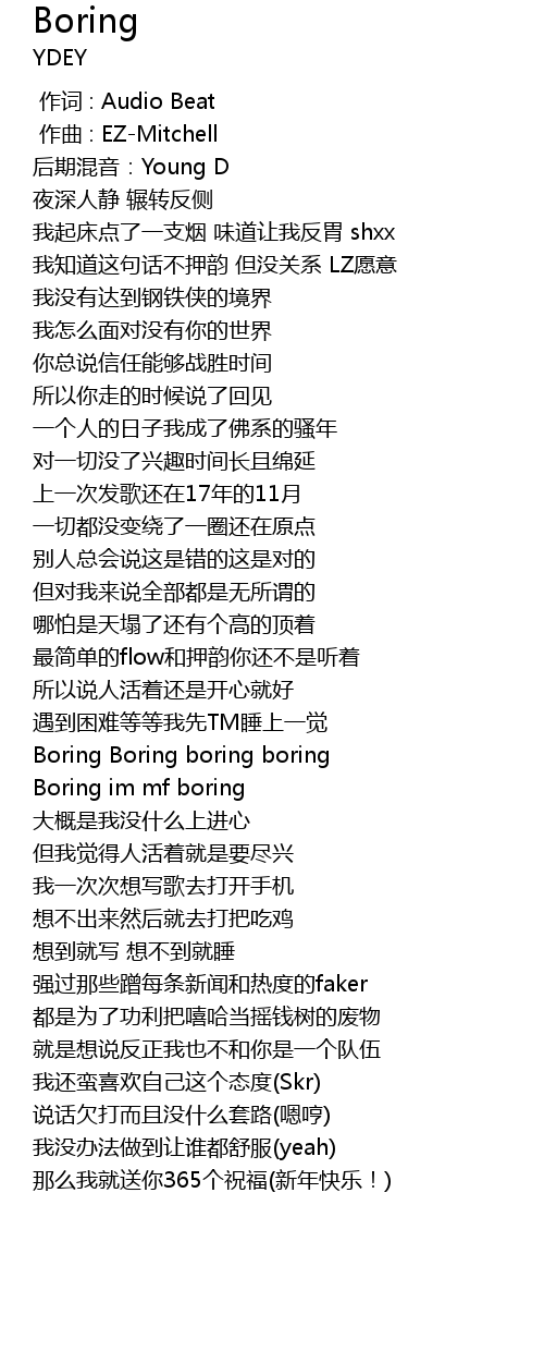 | [01:10.948] | Boring Boring boring boring |