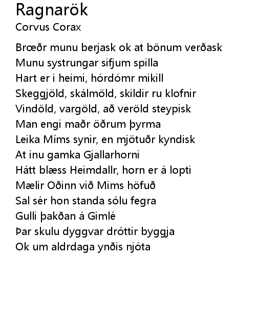 | Vindöld, vargöld, að veröld steypisk | |