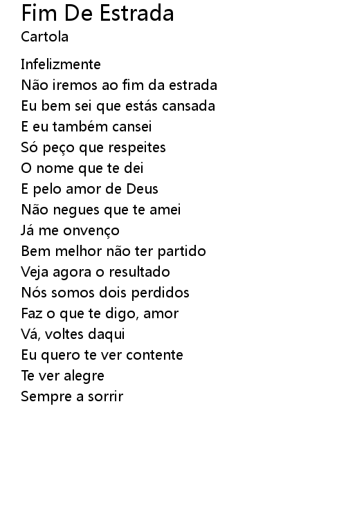 | Não iremos ao fim da estrada | |
