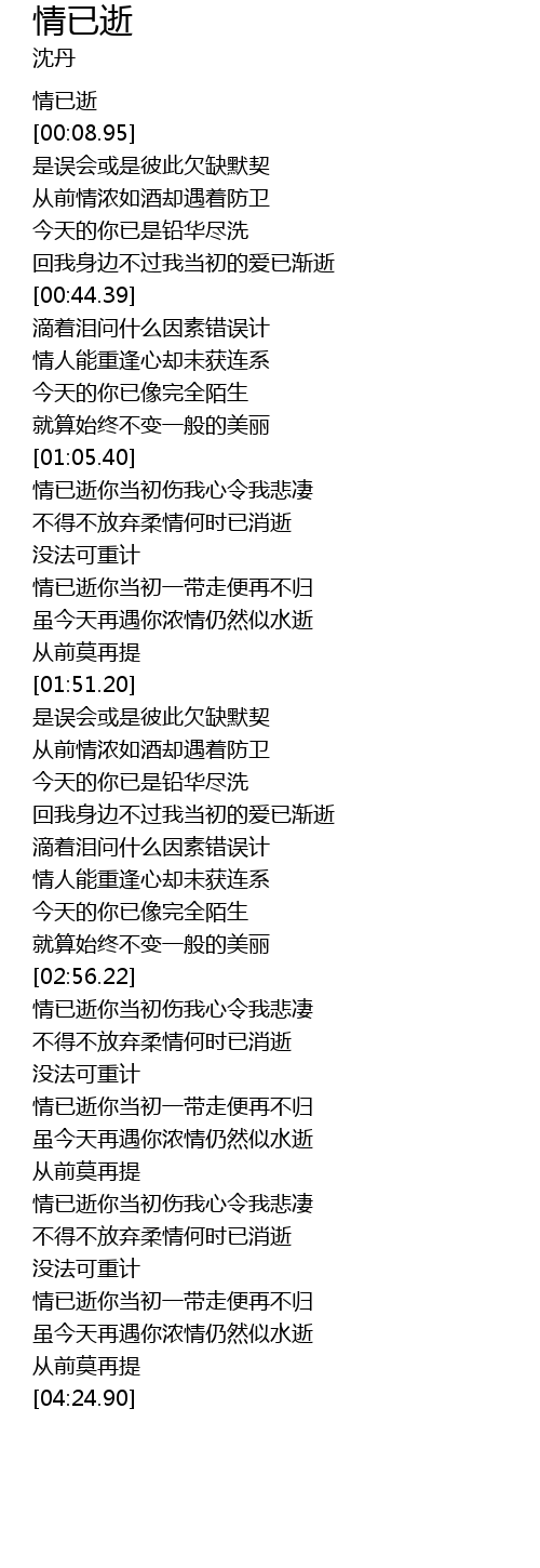 | [00:01.95] | 情已逝 |