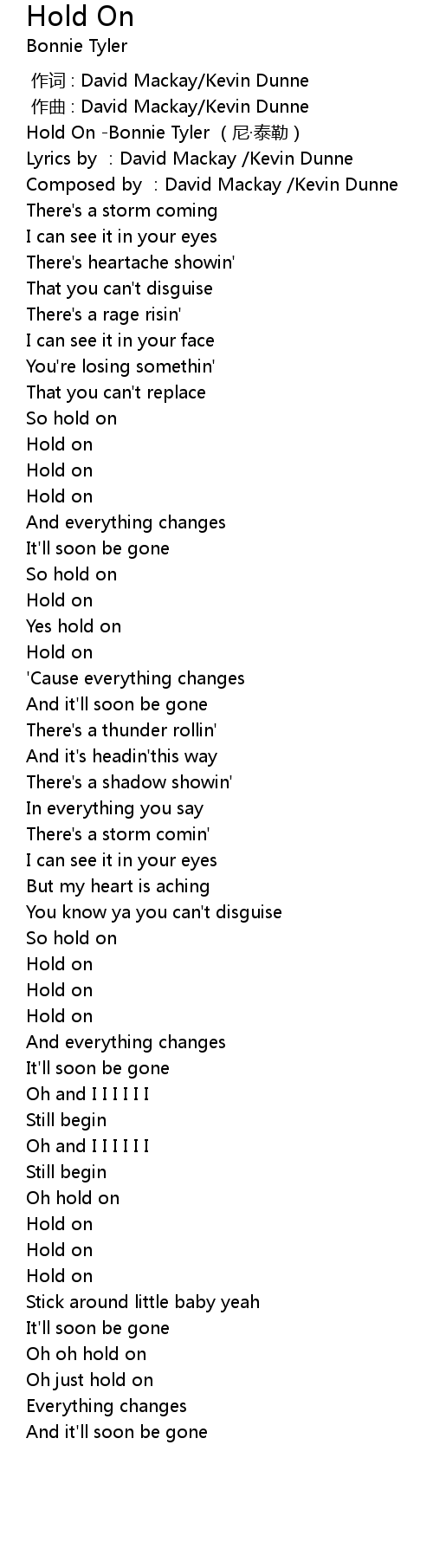 | [00:00.00] | Hold On Bonnie Tyler ní tài lè |