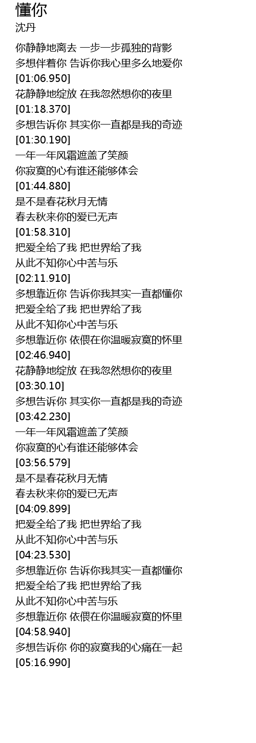 | [04:41.969] | 从此不知你心中苦与乐 |