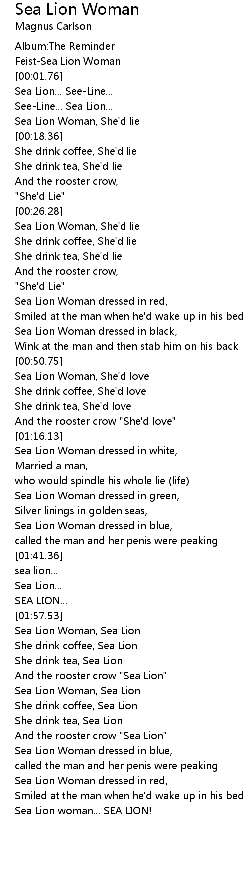 Sea Lion Woman, She'd lie |