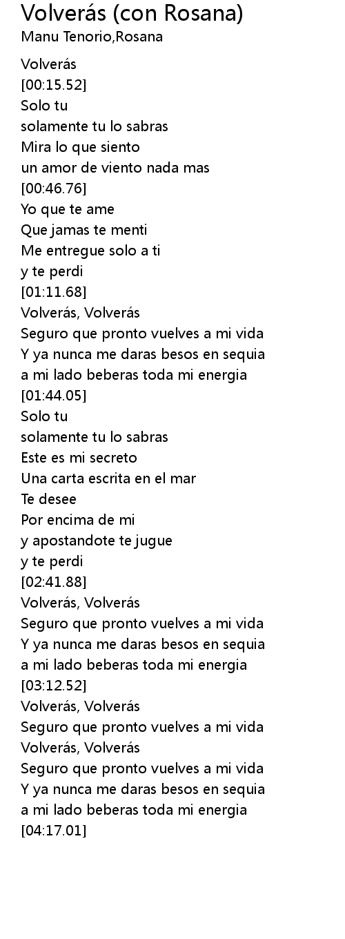 | [03:54.54] | Seguro que pronto vuelves a mi vida |