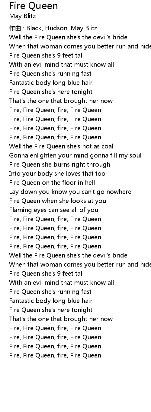 | Fire, Fire Queen, fire, Fire Queen |