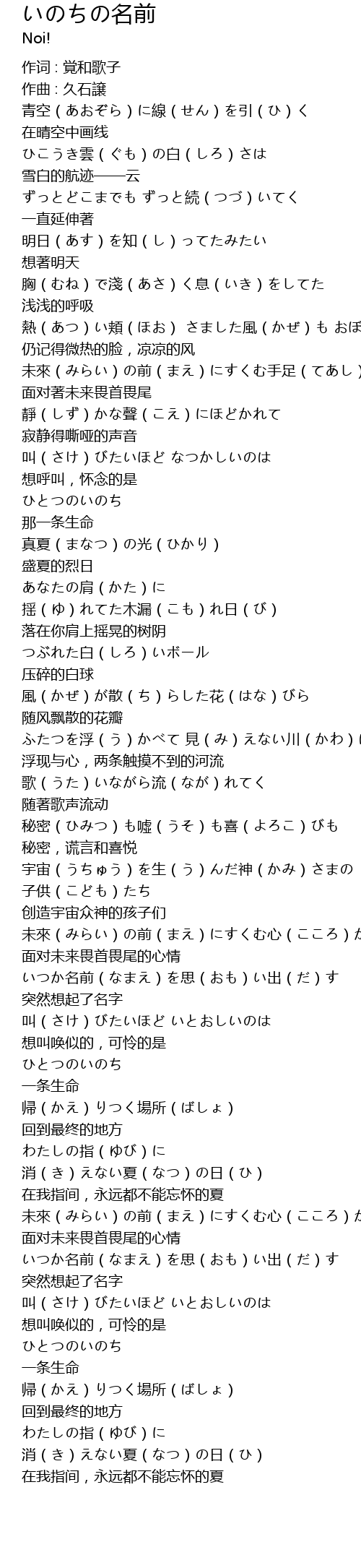 | ひこうき雲(ぐも)の白(しろ)さは | |