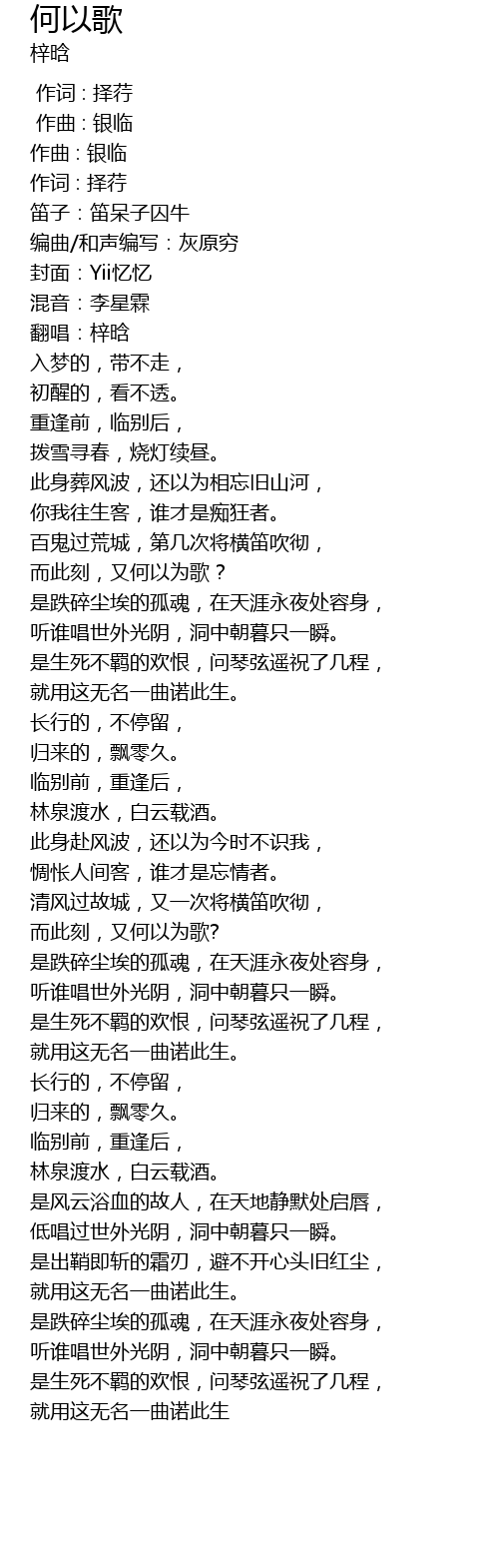 | Song | 何以歌 |