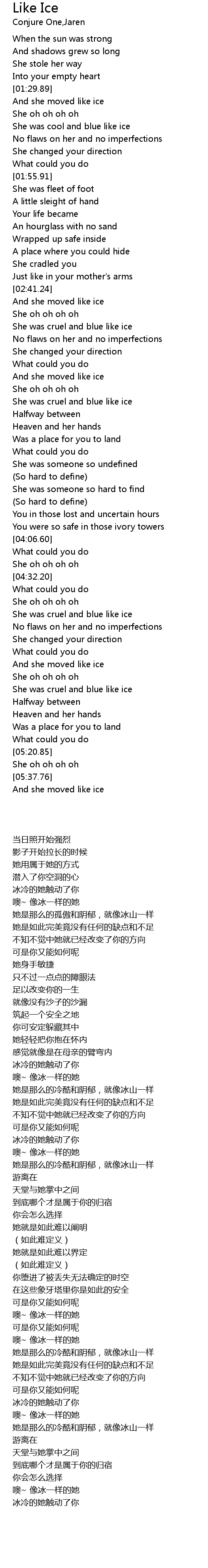 | [01:32.29] | And she moved like ice |