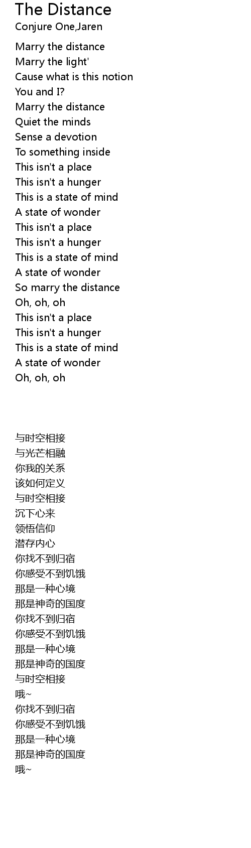 | [00:42.39] | Marry the distance |