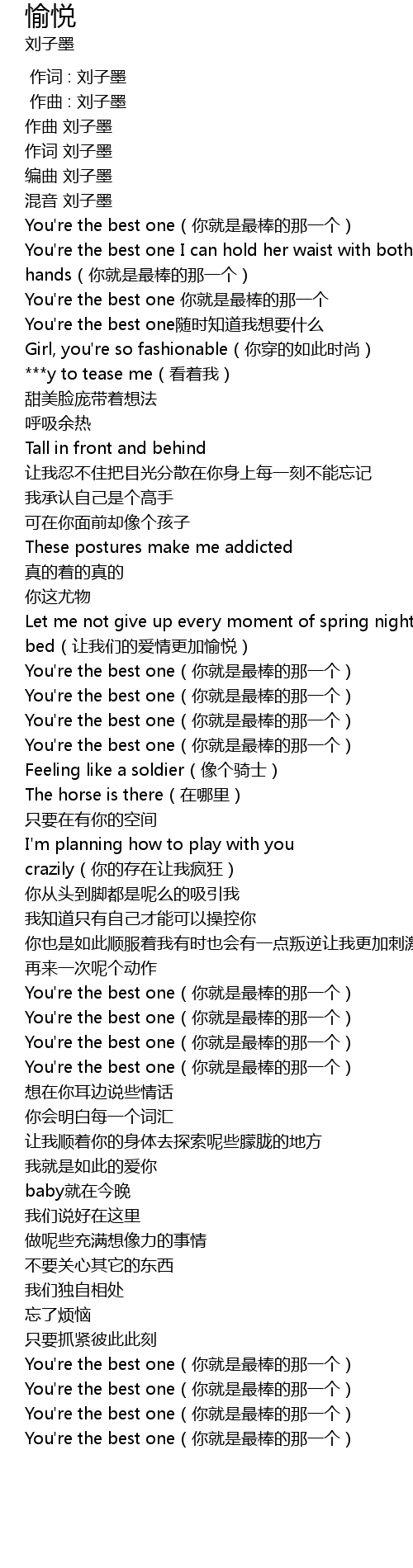 | [01:20.385] | You' re the best one nǐ jiù shì zuì bàng de nà yí gè |