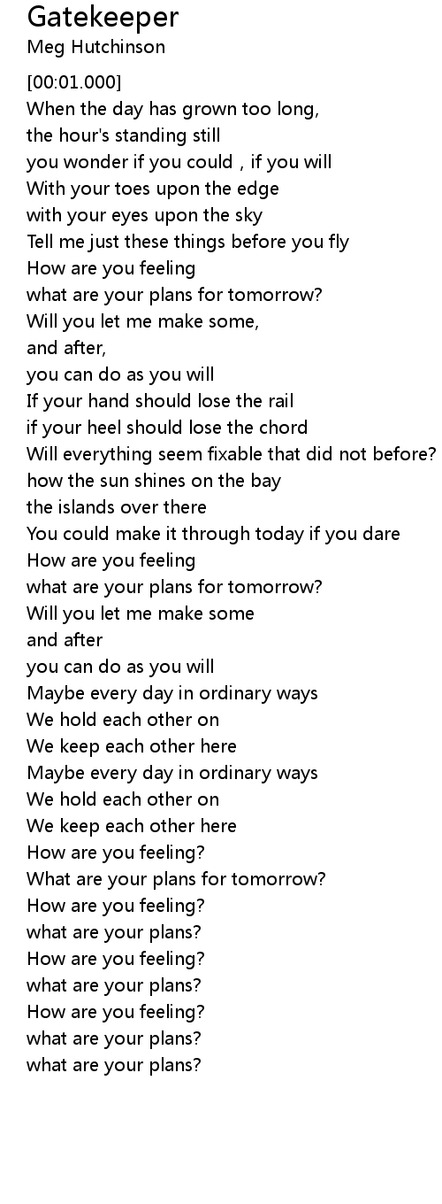 | [04:18.000] | How are you feeling? |