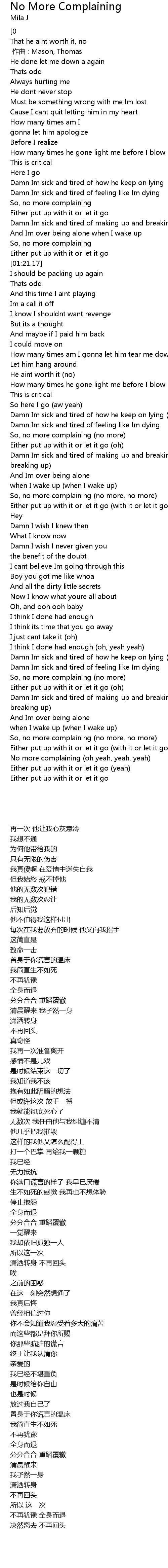 | [02:20.94] | So, no more complaining (no more, no more) |