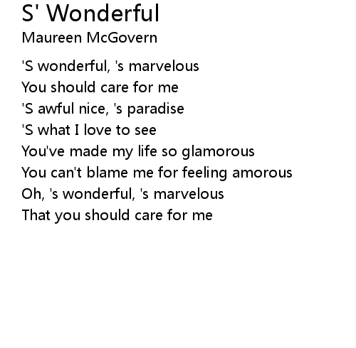 | 'S wonderful, 's marvelous | |