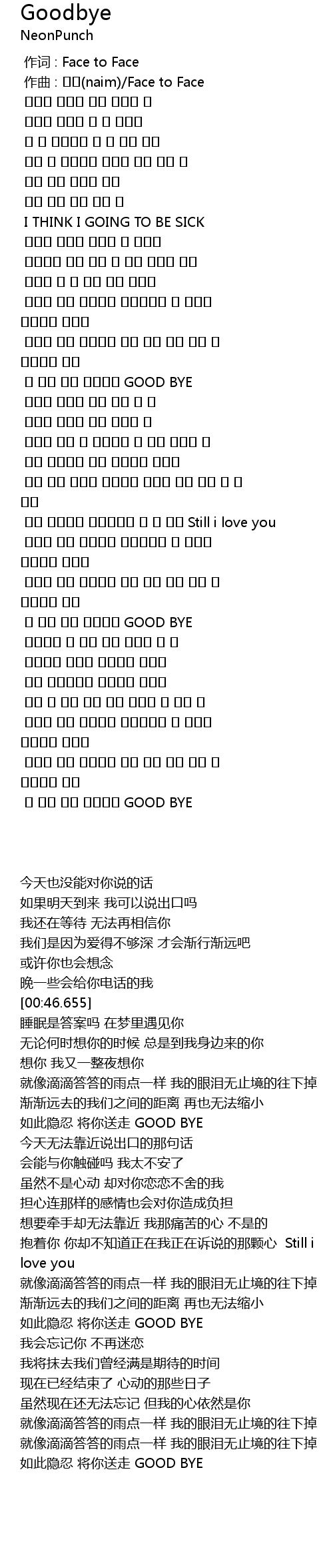 作词 : Face to Face |