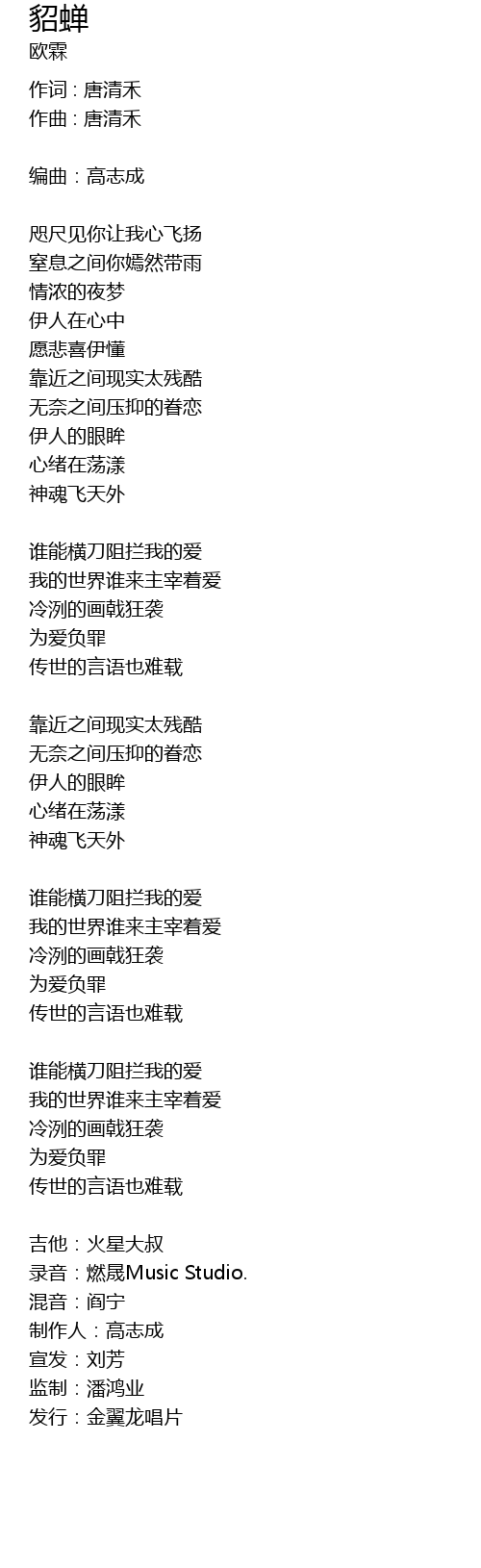 | 作词 : 唐清禾 | |