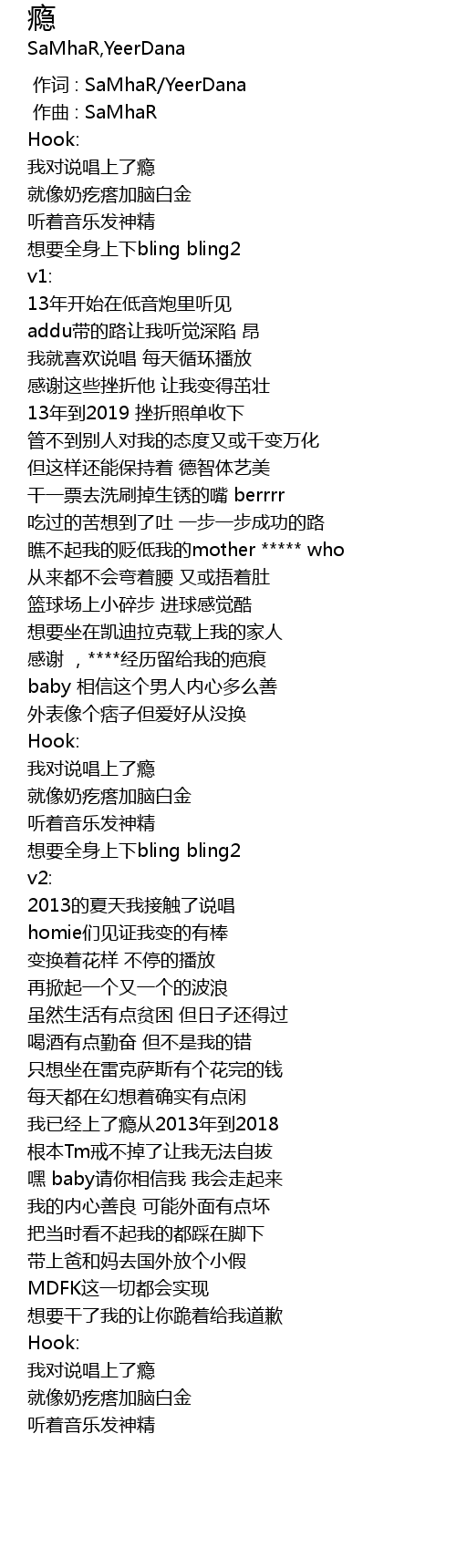 | [00:00.000] | 作词 : SaMhaR/YeerDana |