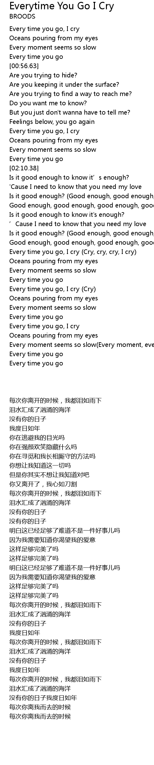 | [03:27.00] | Every time you go, I cry Cry, cry, cry, I cry |