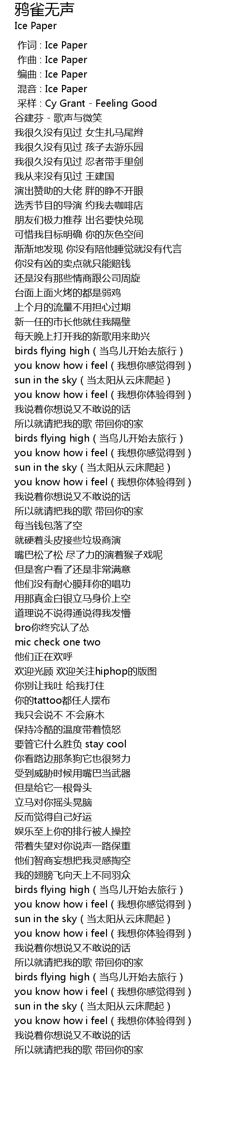 | [00:04.000] | cai yang : Cy Grant Feeling Good |