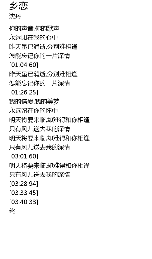 | [00:44.24] | zuó tiān suī yǐ xiāo shì, fēn bié nán xiāng féng |