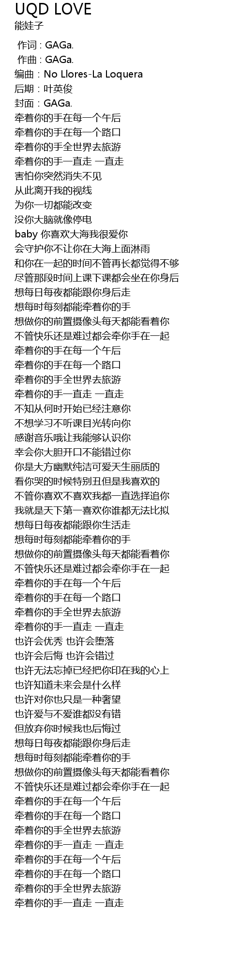 | [01:48.067] | 想每时每刻都能牵着你的手 |
